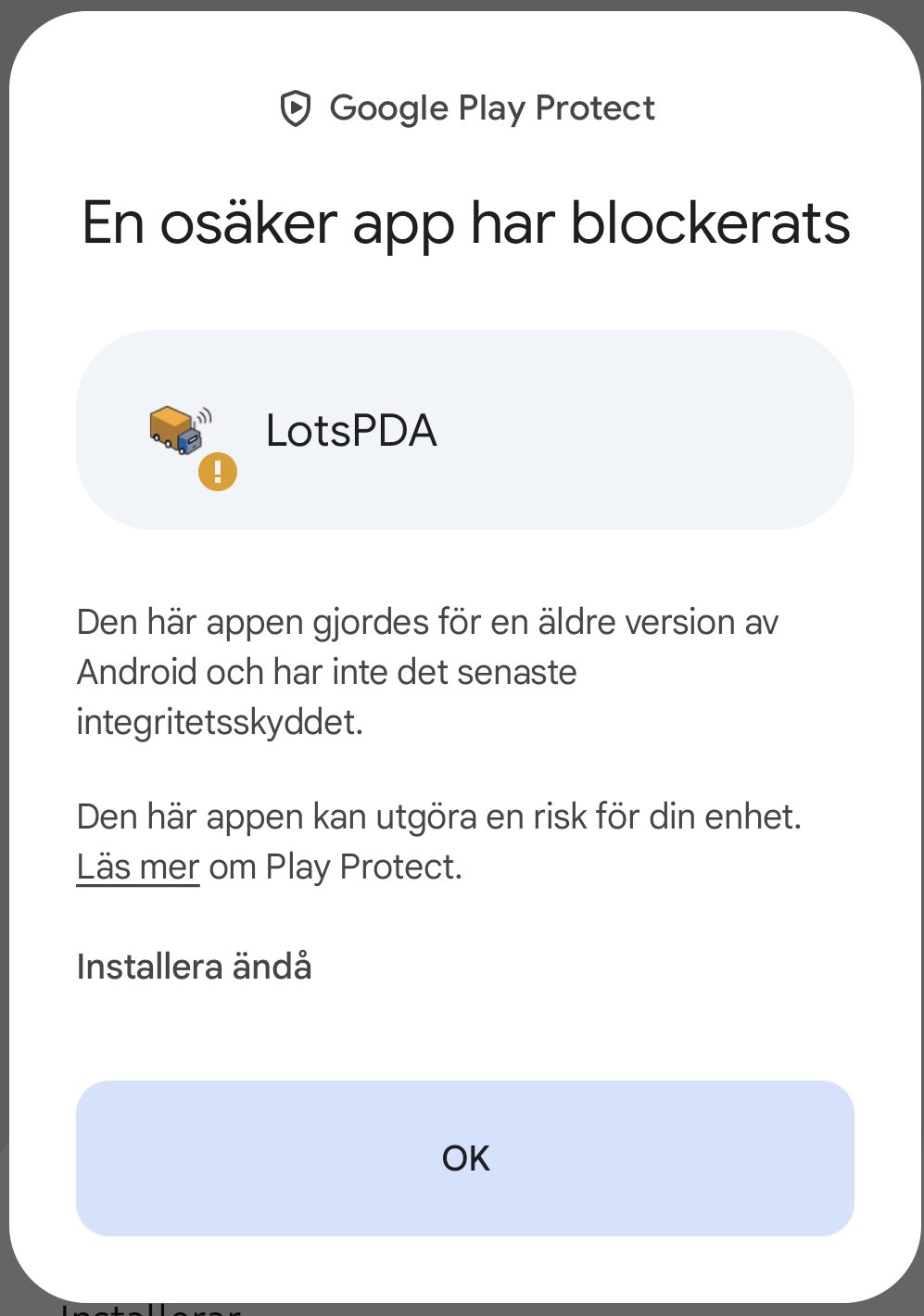 Och vill man göra en helt ny installation så följ den här länken: https://license.lotstoolbox.se/dklbc/lotspda.apk