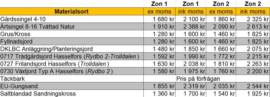 Säckarna rymmer ca 800 liter (1 ton) och körs ut och lyfts av med kranbil. Materialet kan lyftas in max 10 meter från där kranbilen står.